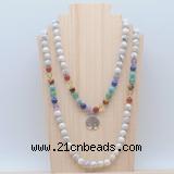 Details: Hand-knotted 7 Chakra mala necklaces: 108 8mm/10mm round white howlite, 7 chakra beads with alloy charm (you can choose different charm) Item: GMN6021 Material: No.1(8mm: white howlite, 7 chakra beads & charm No.2(10mm: white howlite, 7 chakra beads & charm Color: See image Length (inch): Necklace length: 8mm: approx 37 - 40 inches (Not including charm) 10mm: approx 46 - 50 inches (Not including charm) Quantity Discount Pricing: 1 – 4: None 5 – 49: 95% 50 – 99: 90% 100+: 85% This mala is available in both 8mm and 10mm beads, The listed price is for 1 piece 8mm mala necklace Each necklaces is handmade and hand-knotted with different gemstones. Please be aware that each necklace varies in stone pattern and color - Making it a truly one-of-a-kind, unique piece of jewelry. Custom orders are available upon request! If you see different stones you like/want incorporated into a mala necklace or you have any need, please contact us before you placing order or leave remark, and we will be happy to create a mala just for you! Mala necklace is worn on the neck or wrist while not in use. It may also serve as a nice accessory in everyday life or on some special occasions. Whether as a calming meditation guide or a beautiful, this necklace will be a great addition to your spiritual practice.