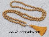Details: Hand-knotted jasper mala necklaces: 108 8mm/10mm round wooden jasper beads with 1 10*17mm alloy guru bead and satin tassel (you can choose different colors) Item: GMN606 Material: No.1: 108 8mm wooden jasper beads, alloy guru bead & satin tassel No.2: 108 10mm wooden jasper beads, alloy guru bead & satin tassel Color: See image Length (inch): Necklace length: No.1(8mm: approx 38 - 41 inches (Not including guru bead & tassel) No.2(10mm: approx 47 - 50 inches (Not including guru bead & tassel) Tassel Lenght: 7cm Quantity Discount Pricing: 1 – 4: None 5 – 49: 95% 50 – 99: 90% 100+: 85% This mala is available in both 8mm and 10mm beads, The listed price is for 1 piece 8mm mala necklace Each necklaces is handmade and hand-knotted with different gemstones. Please be aware that each necklace varies in stone pattern and color - Making it a truly one-of-a-kind, unique piece of jewelry. Custom orders are available upon request! If you see different stones you like/want incorporated into a mala necklace or you have any need, please contact us before you placing order or leave remark, and we will be happy to create a mala just for you! Mala necklace is worn on the neck or wrist while not in use. It may also serve as a nice accessory in everyday life or on some special occasions. Whether as a calming meditation guide or a beautiful, this necklace will be a great addition to your spiritual practice.