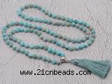 Details: Hand-knotted jasper mala necklaces: 108 8mm/10mm round sea sediment jasper beads with 1 10*17mm alloy guru bead and satin tassel (you can choose different colors) Item: GMN611 Material: No.1: 108 8mm sea sediment jasper beads, alloy guru bead & satin tassel No.2: 108 10mm sea sediment jasper beads, alloy guru bead & satin tassel Color: See image Length (inch): Necklace length: No.1(8mm: approx 38 - 41 inches (Not including guru bead & tassel) No.2(10mm: approx 47 - 50 inches (Not including guru bead & tassel) Tassel Lenght: 7cm Quantity Discount Pricing: 1 – 4: None 5 – 49: 95% 50 – 99: 90% 100+: 85% This mala is available in both 8mm and 10mm beads, The listed price is for 1 piece 8mm mala necklace Each necklaces is handmade and hand-knotted with different gemstones. Please be aware that each necklace varies in stone pattern and color - Making it a truly one-of-a-kind, unique piece of jewelry. Custom orders are available upon request! If you see different stones you like/want incorporated into a mala necklace or you have any need, please contact us before you placing order or leave remark, and we will be happy to create a mala just for you! Mala necklace is worn on the neck or wrist while not in use. It may also serve as a nice accessory in everyday life or on some special occasions. Whether as a calming meditation guide or a beautiful, this necklace will be a great addition to your spiritual practice.