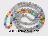 Details: Hand-knotted 7 Chakra mala necklaces: 108 8mm/10mm round labradorite & 7 chakra gemstone beaded necklaces Item: GMN6437 Material: No.1(8mm: labradorite & 7 chakra beads No.2(10mm: labradorite & 7 chakra beads Color: See image Length (inch): Necklace length: 8mm: approx 37 - 40 inches 10mm: approx 46 - 50 inches Quantity Discount Pricing: 1 – 4: None 5 – 49: 95% 50 – 99: 90% 100+: 85% This mala is available in both 8mm and 10mm beads, The listed price is for 1 piece 8mm mala necklace Each necklaces is handmade and hand-knotted with different gemstones. Please be aware that each necklace varies in stone pattern and color - Making it a truly one-of-a-kind, unique piece of jewelry. Custom orders are available upon request! If you see different stones you like/want incorporated into a mala necklace or you have any need, please contact us before you placing order or leave remark, and we will be happy to create a mala just for you! Mala necklace is worn on the neck or wrist while not in use. It may also serve as a nice accessory in everyday life or on some special occasions. Whether as a calming meditation guide or a beautiful, this necklace will be a great addition to your spiritual practice.