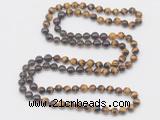 Details: Hand-knotted tiger eye mala necklaces: 108 8mm/10mm round yellow tiger eye, garnet & smoky quartz gemstone beaded necklaces Item: GMN6458 Material: No.1(8mm: yellow tiger eye, garnet & smoky quartz beads No.2(10mm: yellow tiger eye, garnet & smoky quartz beads Color: See image Length (inch): Necklace length: 8mm: approx 37 - 40 inches 10mm: approx 46 - 50 inches Quantity Discount Pricing: 1 – 4: None 5 – 49: 95% 50 – 99: 90% 100+: 85% This mala is available in both 8mm and 10mm beads, The listed price is for 1 piece 8mm mala necklace Each necklaces is handmade and hand-knotted with different gemstones. Please be aware that each necklace varies in stone pattern and color - Making it a truly one-of-a-kind, unique piece of jewelry. Custom orders are available upon request! If you see different stones you like/want incorporated into a mala necklace or you have any need, please contact us before you placing order or leave remark, and we will be happy to create a mala just for you! Mala necklace is worn on the neck or wrist while not in use. It may also serve as a nice accessory in everyday life or on some special occasions. Whether as a calming meditation guide or a beautiful, this necklace will be a great addition to your spiritual practice.