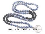 Details: Hand-knotted gemstone mala necklaces: 108 8mm/10mm round blue spot stone & black lava beads with 1 12mm blue spot stone guru bead and alloy charm (you can choose different charms) Item: GMN6510 Material: No.1(8mm: blue spot stone, black lava beads, 12mm guru bead & charm No.2(10mm: blue spot stone,black lava beads, 12mm guru bead & charm Color: See image Length (inch): Necklace length: 8mm: approx 37 - 40 inches (Not including guru bead & charm) 10mm: approx 46 - 50 inches (Not including guru bead & charm) Quantity Discount Pricing: 1 – 4: None 5 – 49: 95% 50 – 99: 90% 100+: 85% This mala is available in both 8mm and 10mm beads, The listed price is for 1 piece 8mm mala necklace Each necklaces is handmade and hand-knotted with different gemstones. Please be aware that each necklace varies in stone pattern and color - Making it a truly one-of-a-kind, unique piece of jewelry. Custom orders are available upon request! If you see different stones you like/want incorporated into a mala necklace or you have any need, please contact us before you placing order or leave remark, and we will be happy to create a mala just for you! Mala necklace is worn on the neck or wrist while not in use. It may also serve as a nice accessory in everyday life or on some special occasions. Whether as a calming meditation guide or a beautiful, this necklace will be a great addition to your spiritual practice.
