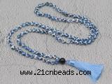 Details: Hand-knotted agate mala necklaces: 108 8mm/10mm round Tibetan agate beads with 1 12mm red agate guru bead and satin tassel (you can choose different colors) Item: GMN688 Material: No.1: 108 8mm Tibetan agate beads, 12mm red agate guru bead & satin tassel No.2: 108 10mm Tibetan agate beads, 12mm red agate guru bead & satin tassel Color: See image Length (inch): Necklace length: No.1(8mm: approx 38 - 41 inches (Not including guru bead & tassel) No.2(10mm: approx 47 - 50 inches (Not including guru bead & tassel) Tassel Lenght: 7cm Quantity Discount Pricing: 1 – 4: None 5 – 49: 95% 50 – 99: 90% 100+: 85% This mala is available in both 8mm and 10mm beads, The listed price is for 1 piece 8mm mala necklace Each necklaces is handmade and hand-knotted with different gemstones. Please be aware that each necklace varies in stone pattern and color - Making it a truly one-of-a-kind, unique piece of jewelry. Custom orders are available upon request! If you see different stones you like/want incorporated into a mala necklace or you have any need, please contact us before you placing order or leave remark, and we will be happy to create a mala just for you! Mala necklace is worn on the neck or wrist while not in use. It may also serve as a nice accessory in everyday life or on some special occasions. Whether as a calming meditation guide or a beautiful, this necklace will be a great addition to your spiritual practice.