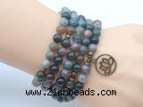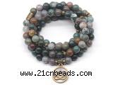 Details: Meditation Jewelry: 108 8mm Indian agate beads healing gemstone necklace/wrap bracelet for yoga/prayer Item: GMN7009 Material: 8mm Indian agate, alloy spacer beads & alloy pendant (You can choose different style and charm set, we will use the same color spacer beads according to the charm set you choose) Color: See image Length (inch): Necklace length: approx 35 - 38 inches (Not including charm) Bracelet length: You can choose 6.5 inches; 7 inches; 7.5 inches; 8 inches or 8.5 inches Quantity Discount Pricing: 1 – 4: None 5 – 49: 95% 50 – 99: 90% 100+: 85% The listed price is for 1 piece 108 beads mala necklace, if you also like the bracelet, please add Each necklaces is handmade and hand-knotted with different gemstones. Please be aware that each necklace varies in stone pattern and color - Making it a truly one-of-a-kind, unique piece of jewelry. Custom orders are available upon request! If you see different stones you like/want incorporated into a mala necklace or you have any need, please contact us before you placing order or leave remark, and we will be happy to create a mala just for you! Mala necklace is worn on the neck or wrist while not in use. It may also serve as a nice accessory in everyday life or on some special occasions. Whether as a calming meditation guide or a beautiful, this necklace will be a great addition to your spiritual practice.