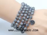 Details: Meditation Jewelry: 108 8mm grey picture jasper beads healing gemstone necklace/wrap bracelet for yoga/prayer Item: GMN7015 Material: 8mm grey picture jasper, alloy spacer beads & alloy pendant (You can choose different style and charm set, we will use the same color spacer beads according to the charm set you choose) Color: See image Length (inch): Necklace length: approx 35 - 38 inches (Not including charm) Bracelet length: You can choose 6.5 inches; 7 inches; 7.5 inches; 8 inches or 8.5 inches Quantity Discount Pricing: 1 – 4: None 5 – 49: 95% 50 – 99: 90% 100+: 85% The listed price is for 1 piece 108 beads mala necklace, if you also like the bracelet, please add Each necklaces is handmade and hand-knotted with different gemstones. Please be aware that each necklace varies in stone pattern and color - Making it a truly one-of-a-kind, unique piece of jewelry. Custom orders are available upon request! If you see different stones you like/want incorporated into a mala necklace or you have any need, please contact us before you placing order or leave remark, and we will be happy to create a mala just for you! Mala necklace is worn on the neck or wrist while not in use. It may also serve as a nice accessory in everyday life or on some special occasions. Whether as a calming meditation guide or a beautiful, this necklace will be a great addition to your spiritual practice.