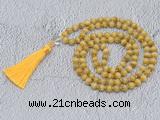 Details: Hand-knotted tiger eye mala necklaces: 108 8mm/10mm round grade AA golden tiger eye beads with 1 12mm white crystal guru bead and satin tassel (you can choose different colors) Item: GMN745 Material: No.1: 108 8mm golden tiger eye beads, 12mm white crystal guru bead & satin tassel No.2: 108 10mm golden tiger eye beads, 12mm white crystal guru bead & satin tassel Color: See image Length (inch): Necklace length: No.1(8mm: approx 38 - 41 inches (Not including guru bead & tassel) No.2(10mm: approx 47 - 50 inches (Not including guru bead & tassel) Tassel Lenght: 7cm Quantity Discount Pricing: 1 – 4: None 5 – 49: 95% 50 – 99: 90% 100+: 85% This mala is available in both 8mm and 10mm beads, The listed price is for 1 piece 8mm mala necklace Each necklaces is handmade and hand-knotted with different gemstones. Please be aware that each necklace varies in stone pattern and color - Making it a truly one-of-a-kind, unique piece of jewelry. Custom orders are available upon request! If you see different stones you like/want incorporated into a mala necklace or you have any need, please contact us before you placing order or leave remark, and we will be happy to create a mala just for you! Mala necklace is worn on the neck or wrist while not in use. It may also serve as a nice accessory in everyday life or on some special occasions. Whether as a calming meditation guide or a beautiful, this necklace will be a great addition to your spiritual practice.