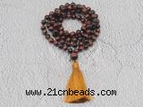 Details: Hand-knotted tiger eye mala necklaces: 108 8mm/10mm round grade AA red tiger eye beads with 1 12mm guru bead and satin tassel (you can choose different colors) Item: GMN748 Material: No.1: 108 8mm red tiger eye beads, 12mm guru bead & satin tassel No.2: 108 10mm red tiger eye beads, 12mm guru bead & satin tassel Color: See image Length (inch): Necklace length: No.1(8mm: approx 38 - 41 inches (Not including guru bead & tassel) No.2(10mm: approx 47 - 50 inches (Not including guru bead & tassel) Tassel Lenght: 7cm Quantity Discount Pricing: 1 – 4: None 5 – 49: 95% 50 – 99: 90% 100+: 85% This mala is available in both 8mm and 10mm beads, The listed price is for 1 piece 8mm mala necklace Each necklaces is handmade and hand-knotted with different gemstones. Please be aware that each necklace varies in stone pattern and color - Making it a truly one-of-a-kind, unique piece of jewelry. Custom orders are available upon request! If you see different stones you like/want incorporated into a mala necklace or you have any need, please contact us before you placing order or leave remark, and we will be happy to create a mala just for you! Mala necklace is worn on the neck or wrist while not in use. It may also serve as a nice accessory in everyday life or on some special occasions. Whether as a calming meditation guide or a beautiful, this necklace will be a great addition to your spiritual practice.