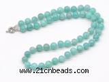 Details: Non-knotted/Hand-knotted gemstone necklaces: 8mm/10mm round amazonite gemstone beaded necklace finished with 8mm brass spring ring clasps (you can choose different size, style & clasp) Item: GMN7831 Material: Amazonite, No.72 jade thread & Brass spring ring clasps Color/Nunber: No.1: 18” 8mm necklace, No.2: 20” 8mm necklace No.3: 22” 8mm necklace, No.4: 24” 8mm necklace No.5: 26” 8mm necklace, No.6: 28” 8mm necklace No.7: 30” 8mm necklace, No.8: 32” 8mm necklace No.9: 34” 8mm necklace, No.10: 36” 8mm necklace No.11: 18” 10mm necklace, No.12: 20” 10mm necklace No.13: 22” 10mm necklace, No.14: 24” 10mm necklace No.15: 26” 10mm necklace, No.16: 28” 10mm necklace No.17: 30” 10mm necklace, No.18: 32” 10mm necklace No.19: 34” 10mm necklace, No.20: 36” 10mm necklace Style: No.1: Non-knotted (Default) No.2: Hand-knotted Length (inch): Approx 18 inches (Default) You can choose 20”; 22”; 24”; 26”; 28”; 30”; 32”; 34” Or 36” Quantity Discount Pricing: 1 – 4: None 5 – 49: 95% 50 – 99: 90% 100+: 85% This necklace is available in both 8mm and 10mm beads, The listed price is for 1 piece Non-knotted No.1 18” 8mm necklace Custom orders are available upon request!