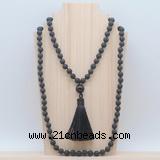 Details: Hand-knotted lava mala necklaces: 108 8mm/10mm round black lava beads with 1 12mm guru bead & satin tassel (you can choose different tassels) Item: GMN806 Material: No.1(8mm: 108 8mm black lava, 12mm guru bead & satin tassel No.2(10mm: 108 10mm black lava, 12mm guru bead & satin tassel Color: See image Length (inch): Necklace length: No.1(8mm: approx 37 - 40 inches (Not including guru bead & tassel) No.2(10mm: approx 46 - 50 inches (Not including guru bead & tassel) Tassel Lenght: 7cm Quantity Discount Pricing: 1 – 4: None 5 – 49: 95% 50 – 99: 90% 100+: 85% This mala is available in both 8mm and 10mm beads, The listed price is for 1 piece 8mm mala necklace Each necklaces is handmade and hand-knotted with different gemstones. Please be aware that each necklace varies in stone pattern and color - Making it a truly one-of-a-kind, unique piece of jewelry. Custom orders are available upon request! If you see different stones you like/want incorporated into a mala necklace or you have any need, please contact us before you placing order or leave remark, and we will be happy to create a mala just for you! Mala necklace is worn on the neck or wrist while not in use. It may also serve as a nice accessory in everyday life or on some special occasions. Whether as a calming meditation guide or a beautiful, this necklace will be a great addition to your spiritual practice.