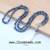 Details: Hand-knotted gemstone mala necklaces: 8mm round blue spot stone beaded necklace finished with OT clasp, alloy charm, lobster clasp, 12mm blue spot stone guru bead & satin tassel (Style No.4) (You can choose different style) Item: GMN8201 Material: 8mm blue spot stone, 12mm blue spot stone guru bead, OT clasp, lobster clasp, tassel, charm & No.72 jade thread (Different styles, different materials) Color/Number: No.1: 18” 8mm necklace, No.2: 20” 8mm necklace No.3: 22” 8mm necklace, No.4: 24” 8mm necklace No.5: 26” 8mm necklace, No.6: 28” 8mm necklace No.7: 30” 8mm necklace, No.8: 32” 8mm necklace No.9: 34” 8mm necklace, No.10: 36” 8mm necklace No.11: 54 8mm beads necklace, No.12: 108 8mm beads necklace Style: No.1: blue spot stone beads mala necklace No.2: No.1 with charm No.3: No.1 with 12mm blue spot stone guru bead & tassel No.4: No.1 with 12mm blue spot stone guru bead, tassel & charm (You can choose different OT clasp/chram/tassel; we will use the lobster clasp same as the color of OT clasp) Length (inch): Approx 18 inches (Default) You can choose 20”; 22”; 24”; 26”; 28”; 30”; 32”; 34”; 36”; 54 beads or 108 beads necklaces If you like 38”; 40”; 42”; 44”; 46”; 48” or bracelet(7” or 8”), please contact us before you placing order (Not including guru bead & tassel) Quantity Discount Pricing: 1 – 4: None 5 – 49: 95% 50 – 99: 90% 100+: 85% This necklace is available in 8mm, The listed price is for 1 piece 18” 8mm necklace Style No.1 Custom orders are available upon request!