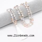 Details: Hand-knotted agate mala necklaces: 27/54/108 8mm/10mm round montana agate beads & 12mm montana agate guru bead with satin tassel Item: GMN8404 Material: 8mm/10mm montana agate, 12mm montana agate guru bead, tassel & No.72 jade thread [you can choose different guru bead(style) & tassel] Color/Number: No.1: 8mm 27 beads mala necklace (you can't choose style No.3) No.2: 8mm 54 beads mala necklace No.3: 8mm 108 beads mala necklace No.4: 10mm 27 beads mala necklace (you can't choose style No.3) No.5: 10mm 54 beads mala necklace No.6: 10mm 108 beads mala necklace Style: No.1: montana agate beads mala necklace No.2: montana agate beads & 12mm montana agate guru bead with tassel No.3: montana agate beads, clasp & 12mm montana agate guru bead with tassel (you can choose different clasp) No.4/No.5/No.6: montana agate beads & 11mm/12mm/10mm alloy guru bead with tassel No.7/No.8/No.9/No.10: montana agate beads & 12mm silver/gold/rose gold/ gunmetal zircon ball guru bead with tassel (No.2 - No.10: you can choose different tassel) Length (inch): 27 beads 8mm: approx 9 – 10 inches; 10mm: 12 – 13 inches 54 beads 8mm: approx 18 – 20 inches; 10mm: 23 – 25 inches 108 beads 8mm: approx 37 – 40 inches; 10mm: 46 – 50 inches (Not including guru bead & tassel) Quantity Discount Pricing: 1 – 4: None 5 – 49: 95% 50 – 99: 90% 100+: 85% This mala is available in both 8mm and 10mm beads, The listed price is for 8mm 27 beads mala necklace Style No.1 Custom orders are available upon request!