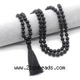 Details: Hand-knotted agate mala necklaces: 27/54/108 8mm/10mm round black onyx beads & 12mm black onyx guru bead with satin tassel Item: GMN8500 Material: 8mm/10mm black onyx, 12mm black onyx guru bead, tassel & No.72 jade thread [you can choose different guru bead(style) & tassel] Color/Number: No.1: 8mm 27 beads mala necklace (you can't choose style No.3) No.2: 8mm 54 beads mala necklace No.3: 8mm 108 beads mala necklace No.4: 10mm 27 beads mala necklace (you can’t choose style No.3) No.5: 10mm 54 beads mala necklace No.6: 10mm 108 beads mala necklace Style: No.1: black onyx beads mala necklace No.2: black onyx beads & 12mm black onyx guru bead with tassel No.3: black onyx beads, clasp & 12mm black onyx guru bead with tassel (you can choose different clasp) No.4/No.5/No.6: black onyx beads & 11mm/12mm/10mm alloy guru bead with tassel No.7/No.8/No.9/No.10: black onyx beads & 12mm silver/gold/rose gold/ gunmetal zircon ball guru bead with tassel (No.2 - No.10: you can choose different tassel) Length (inch): 27 beads 8mm: approx 9 – 10 inches; 10mm: 12 – 13 inches 54 beads 8mm: approx 18 – 20 inches; 10mm: 23 – 25 inches 108 beads 8mm: approx 37 – 40 inches; 10mm: 46 – 50 inches (Not including guru bead & tassel) Quantity Discount Pricing: 1 – 4: None 5 – 49: 95% 50 – 99: 90% 100+: 85% This mala is available in both 8mm and 10mm beads, The listed price is for 8mm 27 beads mala necklace Style No.1 Custom orders are available upon request!