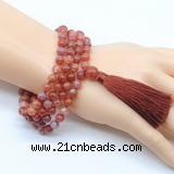 Details: Hand-knotted agate mala necklaces: 27/54/108 8mm/10mm round fire agate beads & 12mm fire agate guru bead with satin tassel Item: GMN8503 Material: 8mm/10mm fire agate, 12mm fire agate guru bead, tassel & No.72 jade thread [you can choose different guru bead(style) & tassel] Color/Number: No.1: 8mm 27 beads mala necklace (you can't choose style No.3) No.2: 8mm 54 beads mala necklace No.3: 8mm 108 beads mala necklace No.4: 10mm 27 beads mala necklace (you can’t choose style No.3) No.5: 10mm 54 beads mala necklace No.6: 10mm 108 beads mala necklace Style: No.1: fire agate beads mala necklace No.2: fire agate beads & 12mm fire agate guru bead with tassel No.3: fire agate beads, clasp & 12mm fire agate guru bead with tassel (you can choose different clasp) No.4/No.5/No.6: fire agate beads & 11mm/12mm/10mm alloy guru bead with tassel No.7/No.8/No.9/No.10: fire agate beads & 12mm silver/gold/rose gold/ gunmetal zircon ball guru bead with tassel (No.2 - No.10: you can choose different tassel) Length (inch): 27 beads 8mm: approx 9 – 10 inches; 10mm: 12 – 13 inches 54 beads 8mm: approx 18 – 20 inches; 10mm: 23 – 25 inches 108 beads 8mm: approx 37 – 40 inches; 10mm: 46 – 50 inches (Not including guru bead & tassel) Quantity Discount Pricing: 1 – 4: None 5 – 49: 95% 50 – 99: 90% 100+: 85% This mala is available in both 8mm and 10mm beads, The listed price is for 8mm 27 beads mala necklace Style No.1 Custom orders are available upon request!
