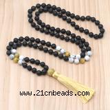 Details: Hand-knotted gemstone mala necklaces: 108 8mm/10mm round black lava, matte white howlite, golden tiger eye & 12mm golden tiger eye guru bead with satin tassel Item: GMN8578 Material: 8mm/10mm black lava, matte white howlite, golden tiger eye beads, 12mm golden tiger eye guru bead, tassel & No.72 jade thread [you can choose different guru bead(style) & tassel] Color/Number: No.1: 8mm 108 beads mala necklace No.2: 10mm 108 beads mala necklace Style: No.1: black lava, matte white howlite, golden tiger eye 108 beads mala necklace No.2: No.1 & 12mm golden tiger eye guru bead with tassel No.3: No.1, clasp & 12mm golden tiger eye guru bead with tassel (you can choose different clasp) No.4/No.5/No.6: No.1 & 11mm/12mm/10mm alloy guru bead with tassel No.7/No.8/No.9/No.10: No.1 & 12mm silver/gold/rose gold/ gunmetal zircon ball guru bead with tassel (No.2 - No.10: you can choose different tassel) Length (inch): 8mm: approx 37 – 40 inches 10mm: approx 46 – 50 inches (Not including guru bead & tassel) Quantity Discount Pricing: 1 – 4: None 5 – 49: 95% 50 – 99: 90% 100+: 85% This mala is available in both 8mm and 10mm beads, The listed price is for 1 piece 8mm 108 beads mala necklace Style No.1 Custom orders are available upon request!
