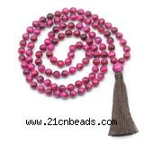 Item: GMN8808 Material: Style No.1: 8mm/10mm red tiger eye Style No.2: 8mm/10mm red tiger eye, 12mm red tiger eye guru bead & silk tassel Style No.3: 8mm/10mm red tiger eye, 12mm red tiger eye guru bead & 8mm/10mm red tiger eye beaded tassel Length (inch): 8mm: approx 37 - 40 inches 10mm: approx 46 - 50 inches (Not including guru bead & tassel) Quantity Discount Pricing: 1 – 4: None 5 – 49: 95% 50 – 99: 90% 100+: 85% This mala is available in both 8mm and 10mm beads, The listed price is for 8mm Style No.1 Necklace And the picture shows 8mm Style No.2. Each necklaces is handmade with different gemstones. Please be aware that each necklace varies in stone pattern and color - Making it a truly one-of-a-kind, unique piece of jewelry. Custom orders are available upon request! If you see different stones you like/want incorporated into a mala necklace or you have any need, please contact us before you placing order or leave remark, and we will be happy to create a mala just for you! Mala necklace is worn on the neck or wrist while not in use. It may also serve as a nice accessory in everyday life or on some special occasions. Whether as a calming meditation guide or a beautiful, this necklace will be a great addition to your spiritual practice.