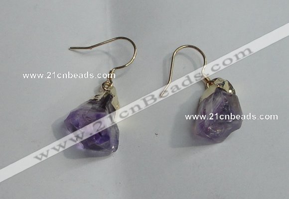 Gemstone earrings jewelry: 13*18mm - 15*20mm nuggets amethyst gemstone with brass setting earrings wholesale