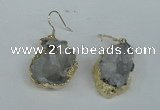 Gemstone earrings jewelry: 10*14mm - 12*16mm nuggets druzy quartz gemstone with brass setting earrings wholesale