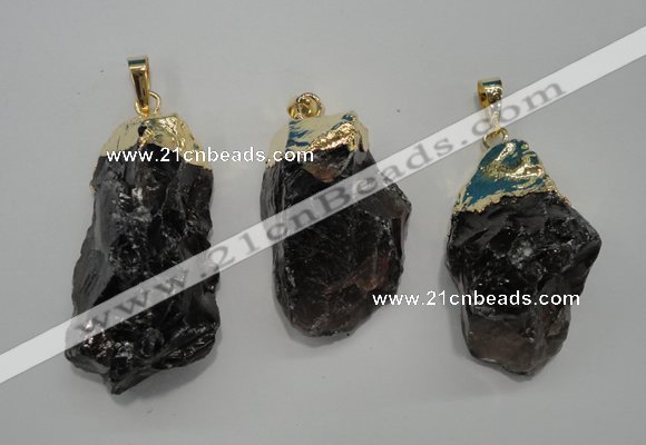 NGP1391 15*25mm - 20*35mm faceted nuggets smoky quartz pendants