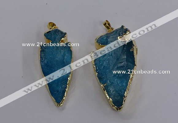 Details: Gemstone pendant jewelry: 25*45mm - 30*60mm arrowhead dyed white crystal gemstone with brass setting pendants wholesale Item: NGP3816 Material: natural white crystal (Dyed Shape: arrowhead Color: See image Size (mm): approx 25*45mm - 30*60mm (Hole: approx 5mm) Quantity Discount Pricing: 1 – 4: None 5 – 49: 95% 50 – 99: 90% 100+: 85% The listed price is for one pendant The pictures of this item on our website are just a reference to tell you that they are in mixed colors and/or mixed shapes. However, the colors or shapes we get from the factory may vary each time, so we will send your orders randomly according to our stock. |